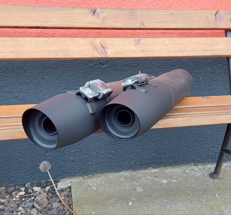 Wir benötigen nur deine 2 Auspuffe ohne Krümmer.